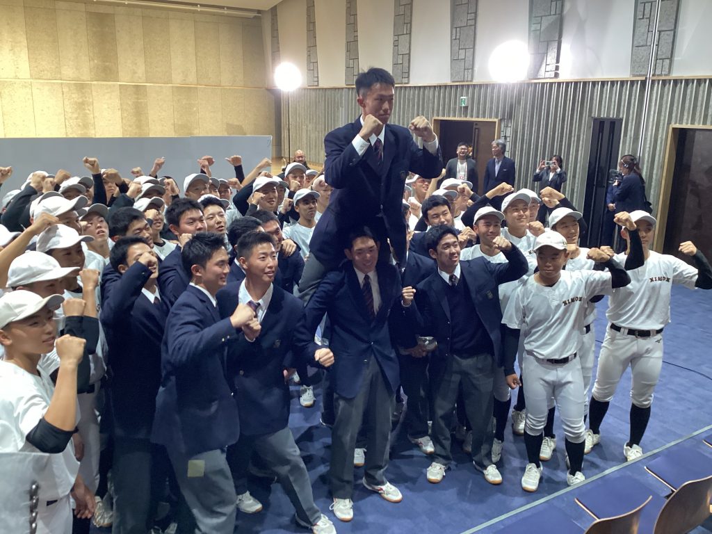 10月23日、プロ野球ドラフト会議で本校野球部3年生の窪田洋祐君がオリックスバファローズから4位の指名をいただきました。高校では投打二刀流で注目されており、潜在能力の高さに大きな期待が寄せられています。指名を受けて、「指名された良かった。見ていてわくわくするような選手になりたい。」と語っています。また、本校33期卒業生の高谷舟投手(北海学園大学)もオリックスバファローズから5位の指名を受け、本校関係では2名の指名となりました。プロ野球という舞台で大きく活躍してくれることを期待しています。