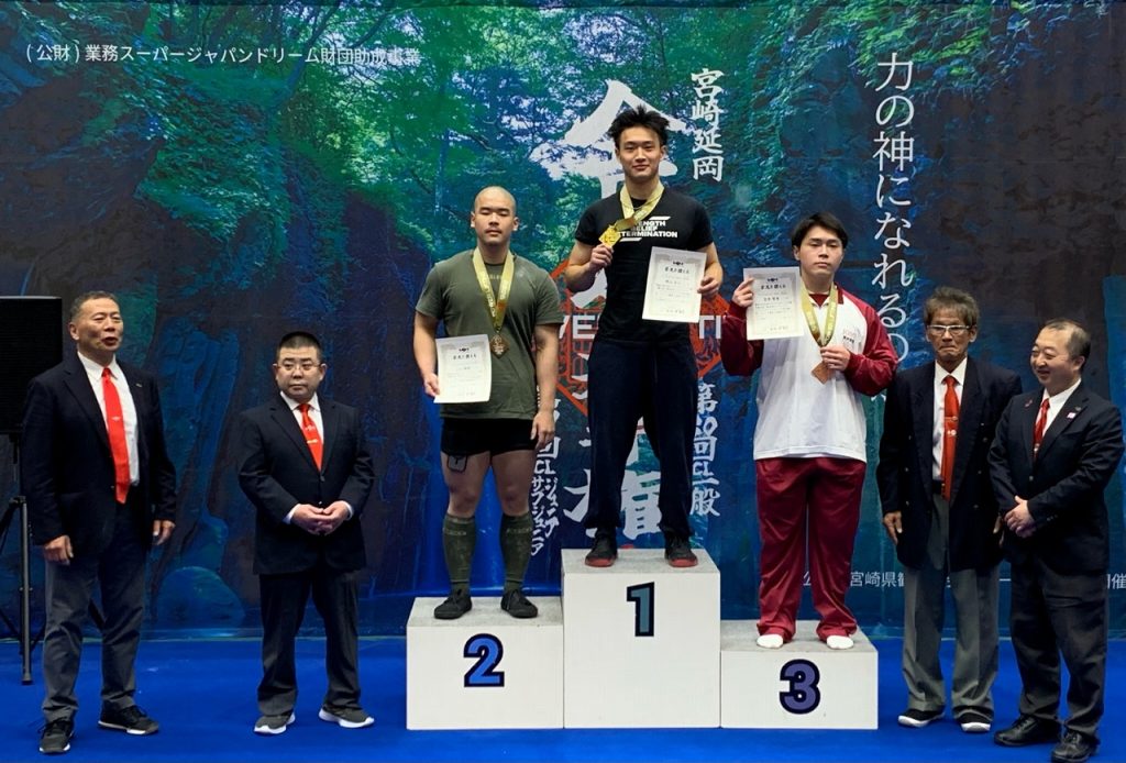 また、今回の競技記録(スクワット、ベンチプレス、デッドリフト3種目の合計値)615.0kgは83kg級サブジュニアの日本新記録です。