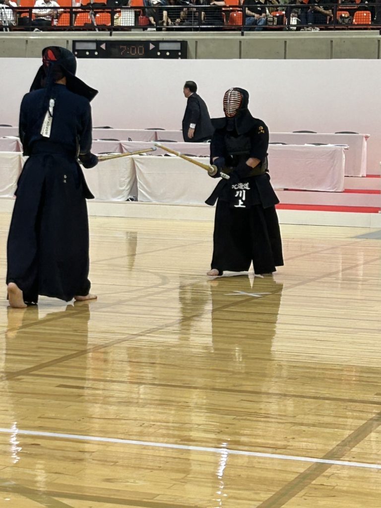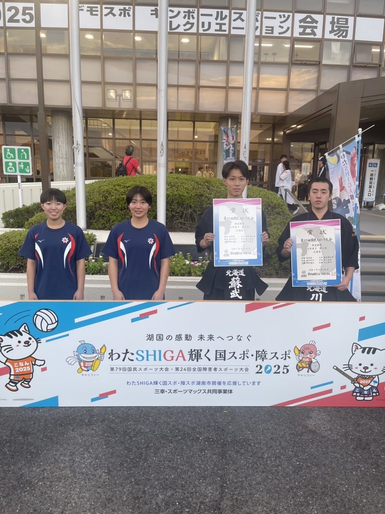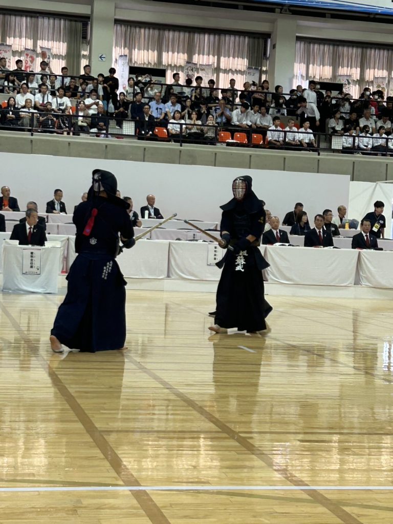 9月29日(月)~10月1日(水)滋賀県湖南市総合体育館で第79回国民スポーツ大会剣道競技会が行われ、少年男子の部に蘇武凛太郎さん(3年)、川上夢太さん(2年)、少年女子の部に小田島蒼来さん(2年)、五十嵐琴子さん(1年)の4名が出場しました。少年男子は初戦神奈川県と対戦し0対0の代表決定戦により勝利。二回戦長崎県に1対2で惜しくも敗退し第5位という結果でした。少年女子は初戦宮崎と対戦し1対2で敗退という結果でしたが、この大きな舞台で堂々と立派な試合をしてくれました。この経験を活かし、今後のさらなる活躍を期待します。