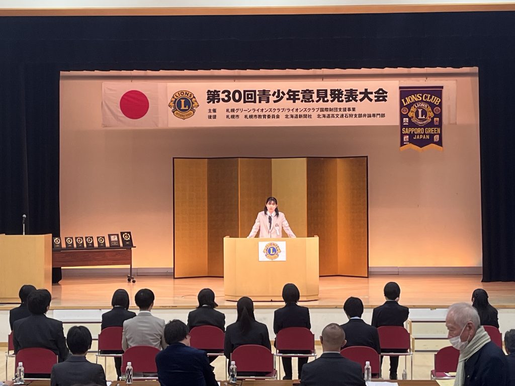 【弁論部】青少年意見発表大会 2名が見事優良賞を受賞 2026.02.10 部活高校 2月8日(日)に札幌エルプラザで開催された青少年意見発表大会で、谷口 央桂さん(2年)と妹尾 優輝さん(2年)が出場し、両名とも見事優良賞を受賞しました。