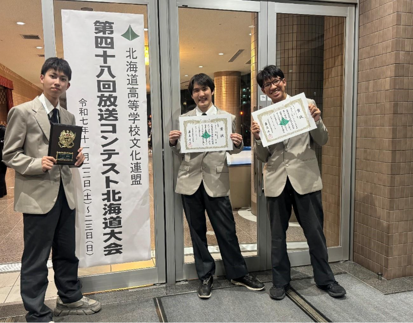 11月22日(土)・23日(日)に第48回高文連放送コンテスト北海道大会が釧路市で行われ、本校放送局は朗読とオーディオメッセージの二部門で入賞しました。