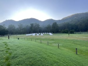 2月10日 8日目。キャンプ泊の朝、天気は曇り。グレンワースバレーは谷なので霧がかかり、幻想的な朝の風景でした。7時からの朝食、テント泊に慣れた生徒となれない生徒がいて、あまり休めず眠そうな生徒がいましたが、体調不良者もなく、全員で朝食をとりました。その後、10:00まで自由時間、集合後にテントをバックに学年写真をとりました。