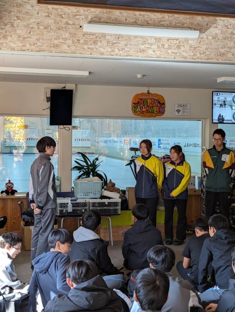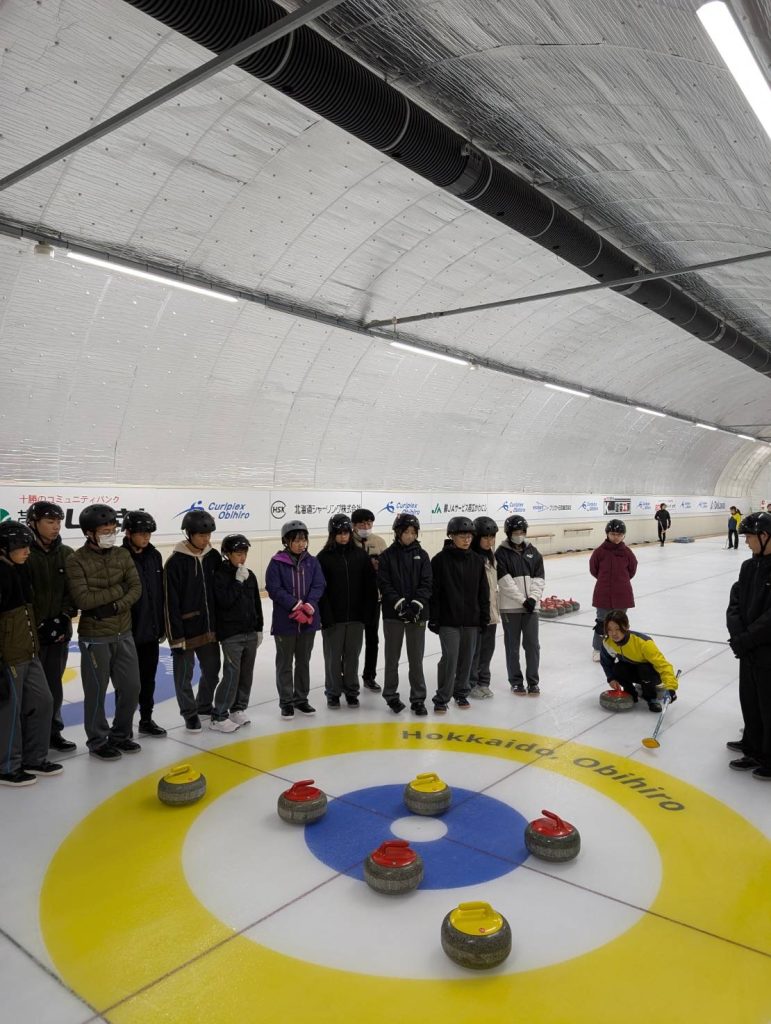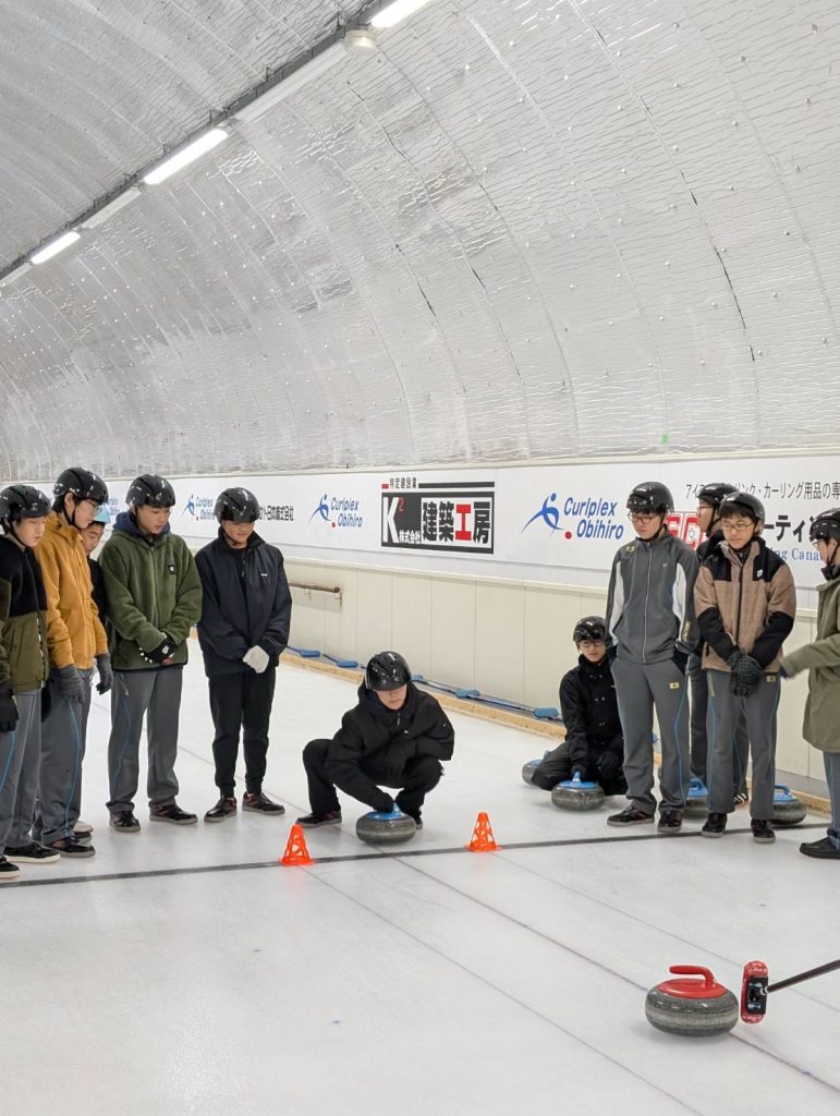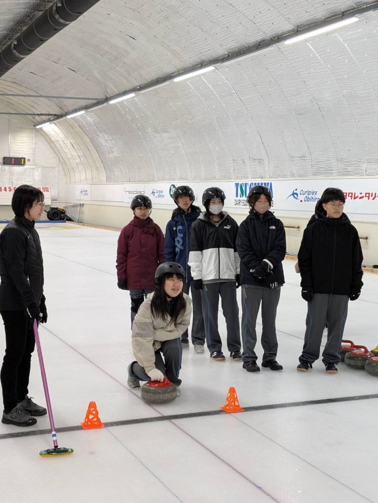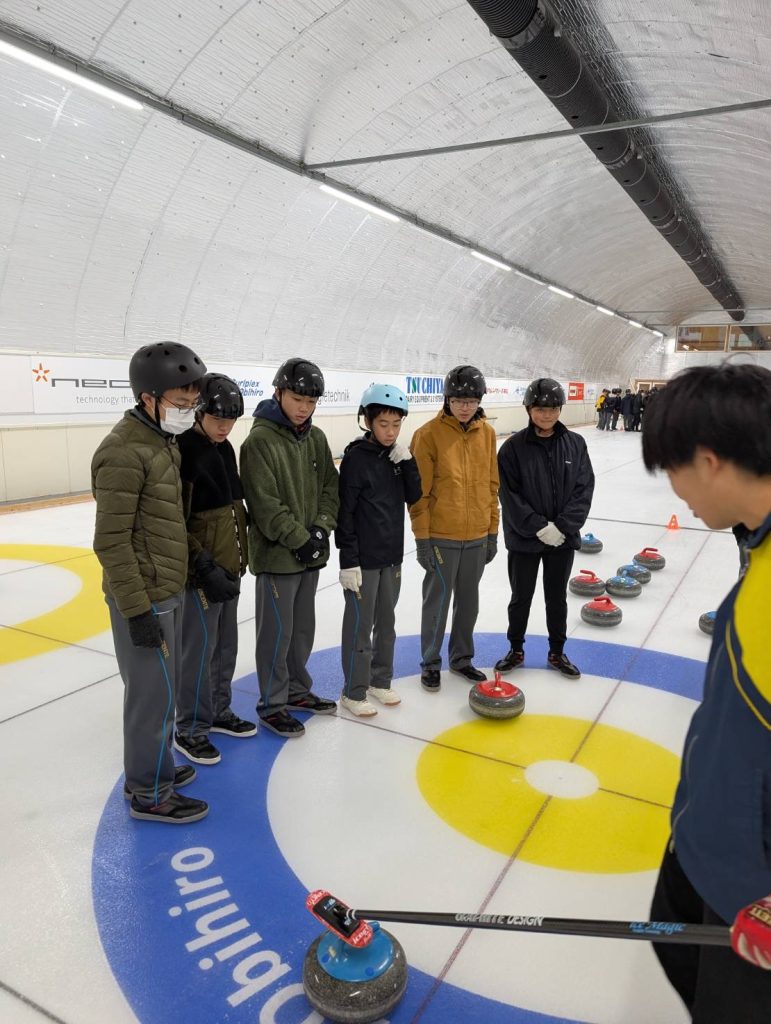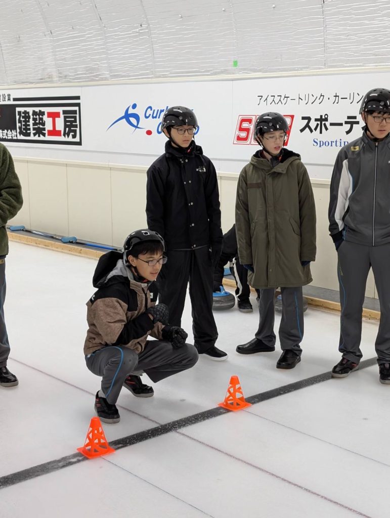グループ3 カーリング体験 先日講演をしてくれた加藤先輩も指導に当たってくれました。(写真のみ紹介させていただきます)