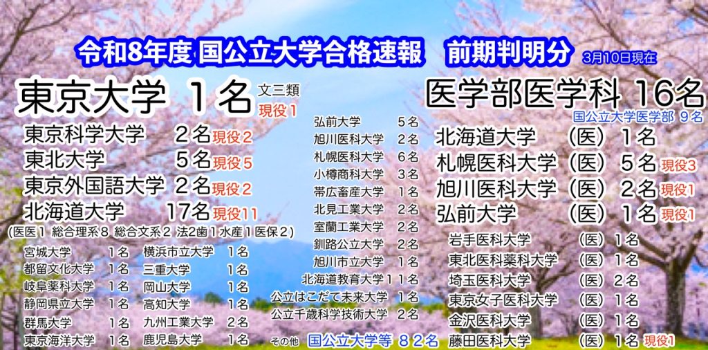 令和8年度国公立大学合格速報 前期判明分