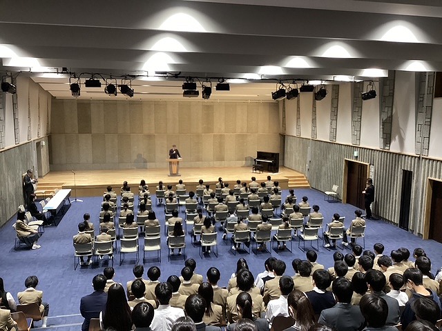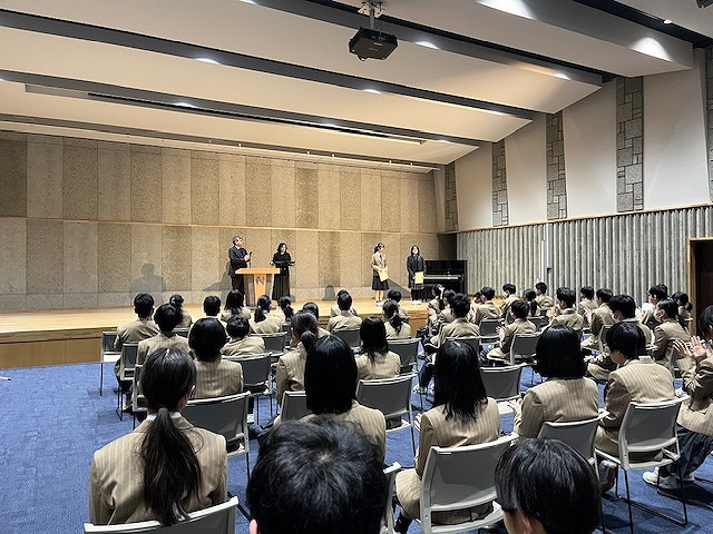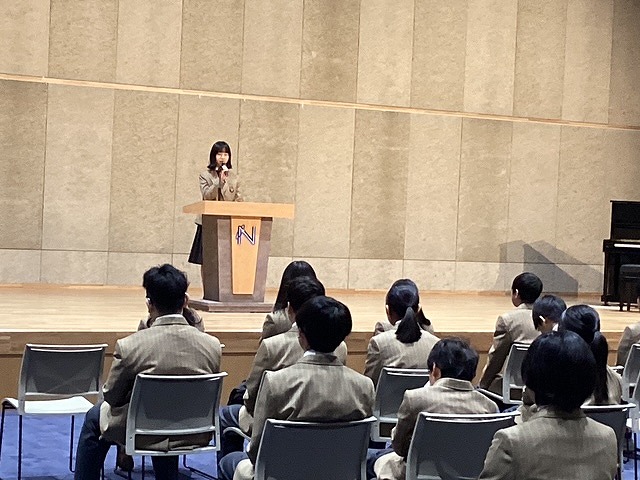 全校集会では校歌斉唱の後、森副校長からは失敗を乗り越えて楽しみながら前に進もう、という言葉をいただきました。生徒会、副会長の押見そらさんは一つ一つのことを大切にして過ごしたい、と話しておりました。
