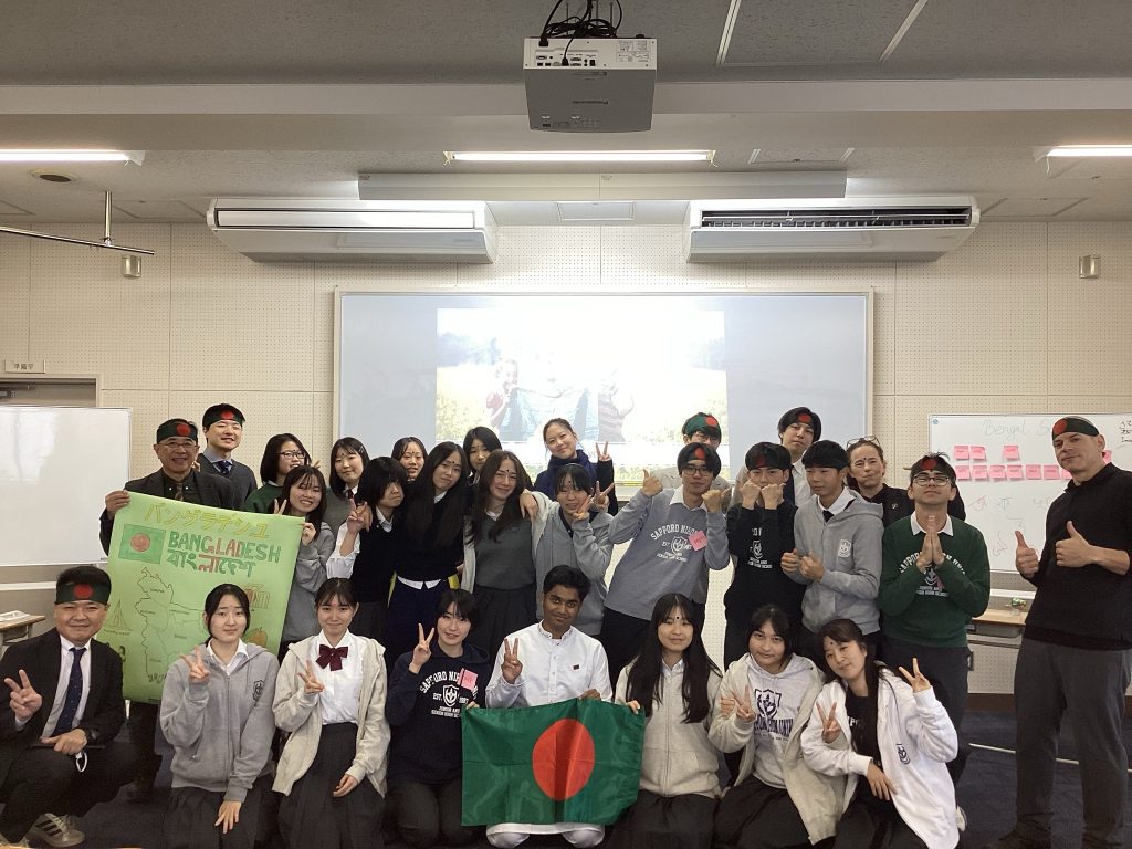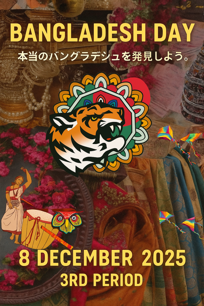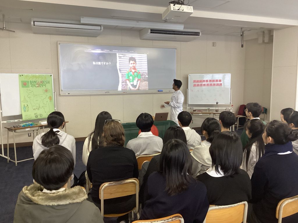 日本政府がアジアの優秀な高校生を招聘する「アジア高校生架け橋プロジェクト+」の留学生で、8月から本校1年9組で学んでいるHasan Imamくんが母国のバングラデシュの文化や生活について紹介する「Bangladesh Day」を開催し、国際バカロレアコース1,2年生と教職員が参加しました。