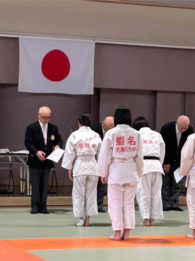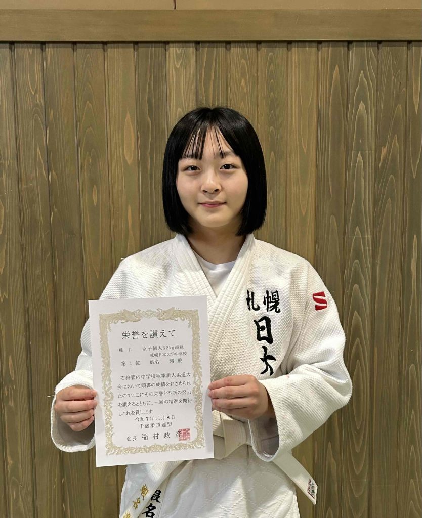 石狩管内中学校秋季新人柔道大会 2025.11.17 中学部活 11月8日(土曜日)、千歳市開基記念総合武道館において、石狩管内中学校秋季新人柔道大会が開催されました。 本校より中学1年生の蝦名 澪さんが出場しました。成績は以下のとおりです。 女子個人戦 52kg超級 優勝 蝦名 澪さん(中学1年)