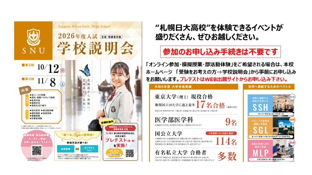 各種プログラムを通じて本校の魅力を存分に体験していただければ幸いです。多くの皆様のご来校、心よりお待ちしております。