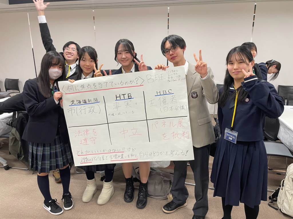 1日目は本校をはじめとした道内の高校生が道外生とウポポイを見学し、アイヌの人々の文化や歴史について学びました。2日目はアイヌ文化財団の方とのパネルディスカッションや民間企業の皆様によるワークショップに臨み、持続可能な共生社会について考えを深めました。生徒は「バカロレアの学びにつながる深い探究ができた」といった声が上がりました。3日目は石屋製菓様、エア・ウォーター北海道様の共生の取り組みを施設見学を通して学びました。本校は3日目のホストとして両企業の取り組みについて他校生徒にプレゼンテーションを行いました。