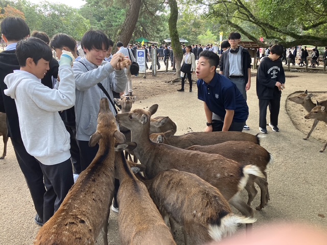 今日はとうとう最終日です。まず最初は東大寺、奈良公園です。壮大な東大寺の大仏殿を見学して、奈良公園の鹿さんたちに会いに行きました。奈良公園はとても平和な雰囲気で落ち着きます。