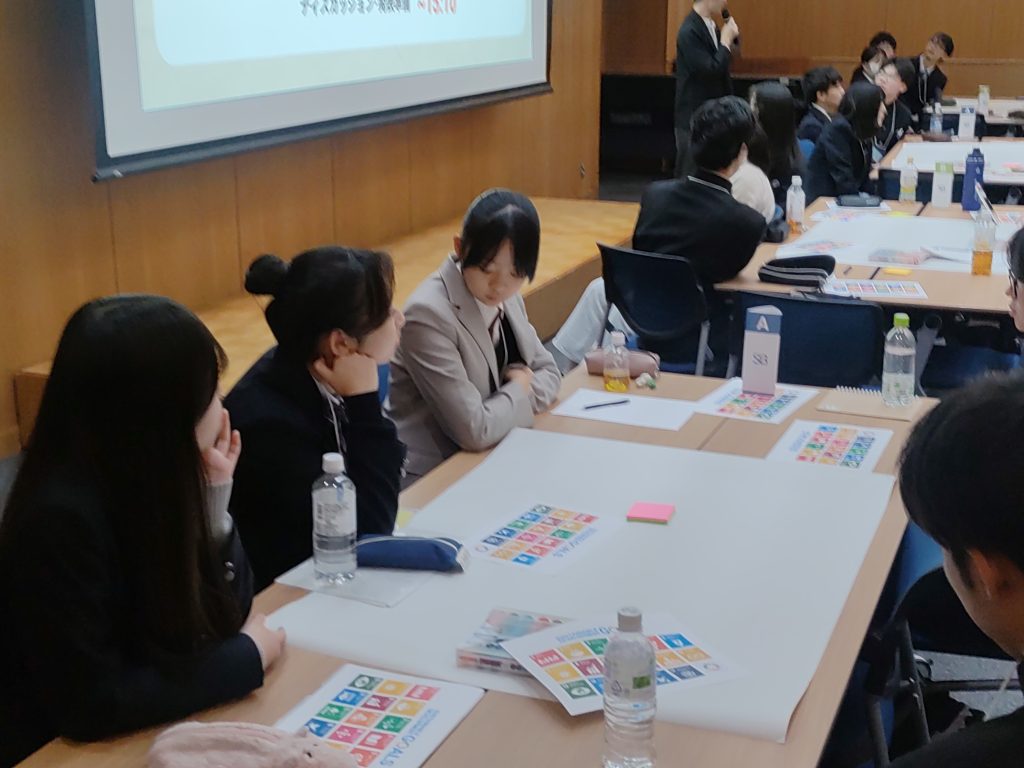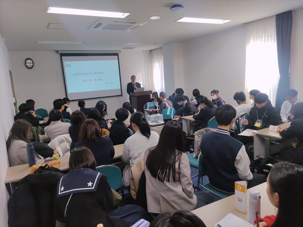 午前中はRapidus株式会社の内野美由紀様より半導体産業の挑戦について、基調講演では株式会社Ezo Worm Japanの黒岩夕綺様から「好きなことに全力で向き合うことが課題解決、未来につながる」という実践を交えた興味深い話を聞けました。また、テーマ別講演企業3社によるパネルディスカッションが行われ、SDGsに取り組む企業の責任や、収益面の課題などについて率直に語られ、生徒も真剣に聴いていました。
