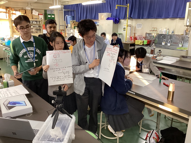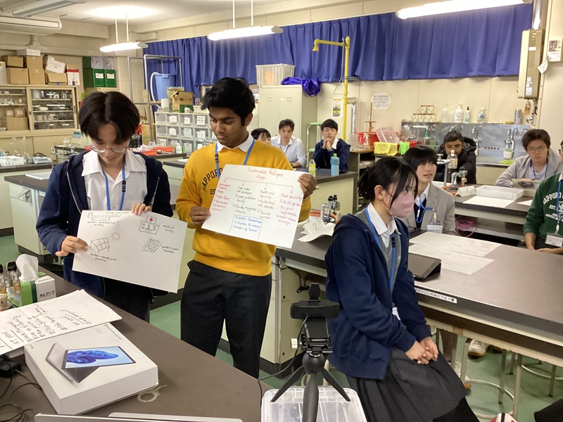2025年11月15日(土)14:00-16:30、本校生徒9名、札幌東高校の生徒1名及びフィリピン姉妹校CARCの生徒2名及びバングラデシュ高校生1名が参加して、3回目となる「Environmental talks with future generations」を実施しました。